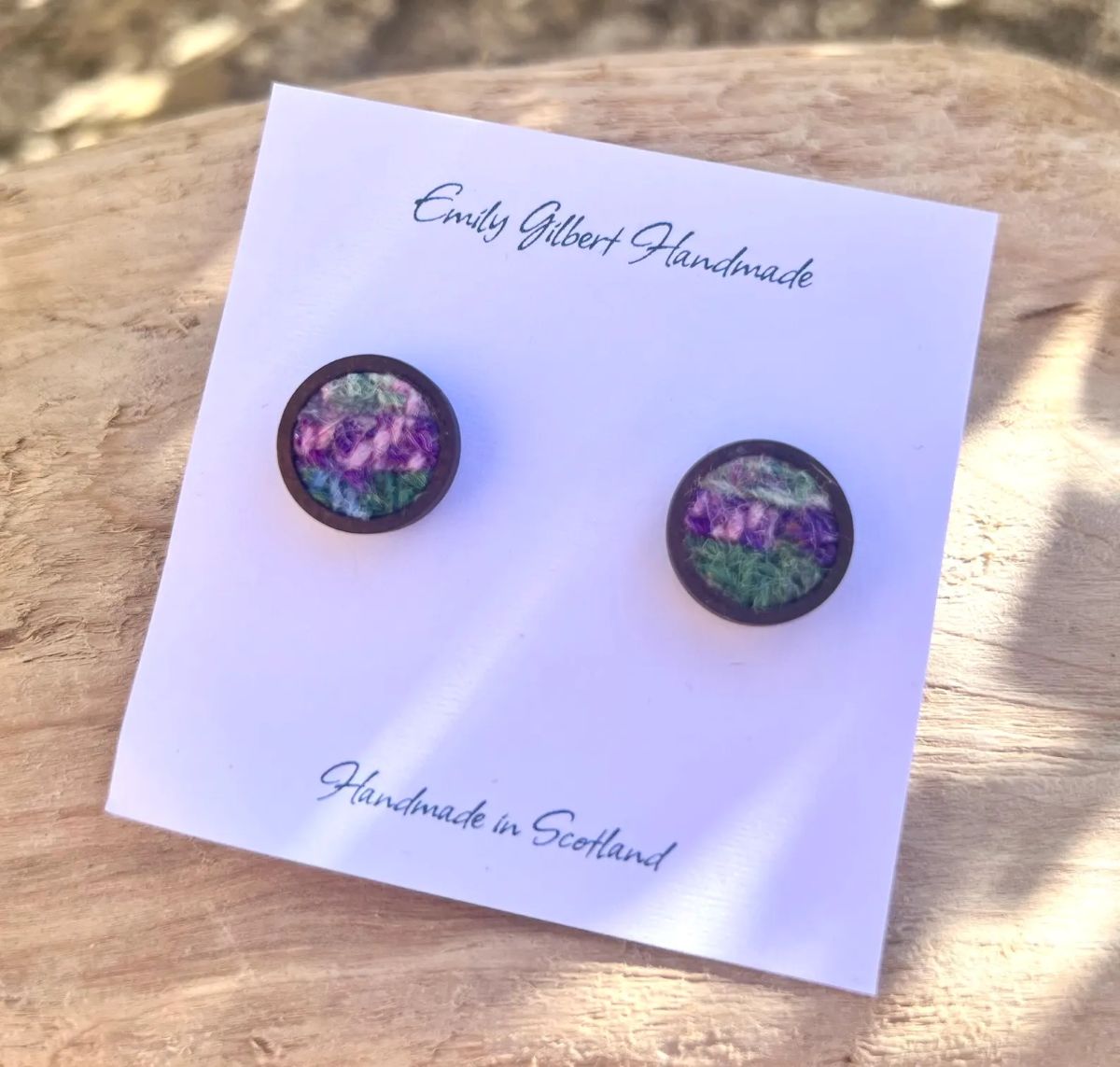 Crafted from handwoven Harris Tweed and stainless steel findings these stud earrings are handmade in Fife, Scotland.